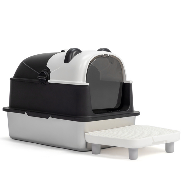 Add a playful touch to your cat's routine with this adorable panda-themed stainless steel cat litter box. Designed for big cats and multiple-cat households, this extra large litter box offers high-sided protection against spills and urine leakage. The combination of a durable stainless steel tray and a charming black-and-white lid with panda ears ensures both performance and visual appeal. Easy to clean, odor-resistant, and fully enclosed for privacy, this box includes a litter scoop and filter pedal for a cleaner, more convenient setup. It's the perfect blend of functionality and cuteness for your furry friend's bathroom space.
