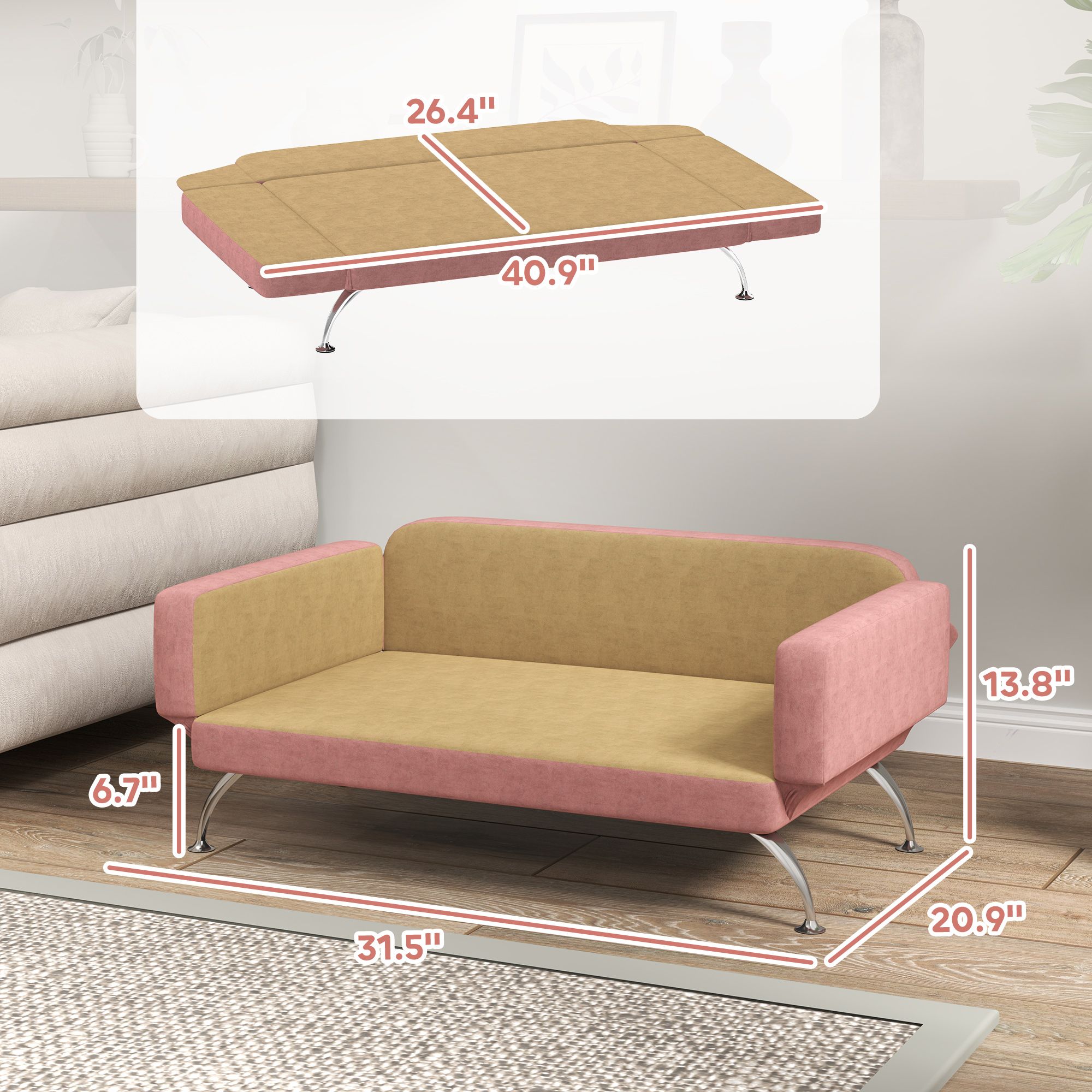 • - Pet Couch Info: Dimensions: 31.5" L x 20.9" W x 13.8" H. Maximum load: 66 lbs. Easy assembly